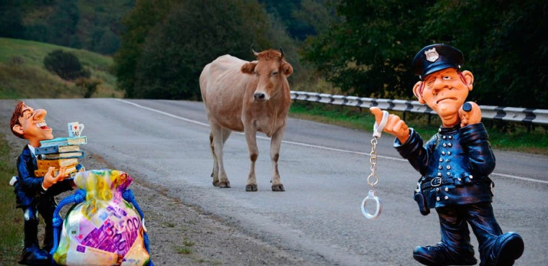 Следовательно, если вы наехали на корову на дороге, то споры о виновности в таком случае разрешаются в соответствии с законодательством об имуществе. Вам не грозит штраф за причинение вреда здоровью корове, как если бы это был человек, равно как у хозяина скотины отсутствует необходимость получать медицинские заключения по животному.