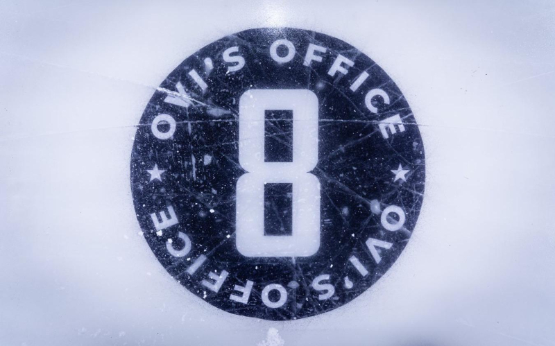 На хоккейных катках США появились «офисы Овечкина» «Офис» представляет из себя логотип в виде шайбы с изображением цифры восемь