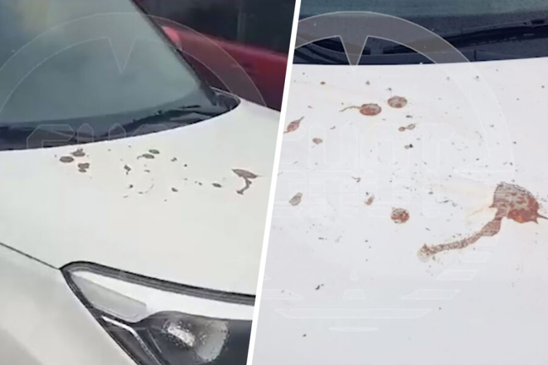 В результате нападения был поврежден капот автомобиля, крыша и багажник.