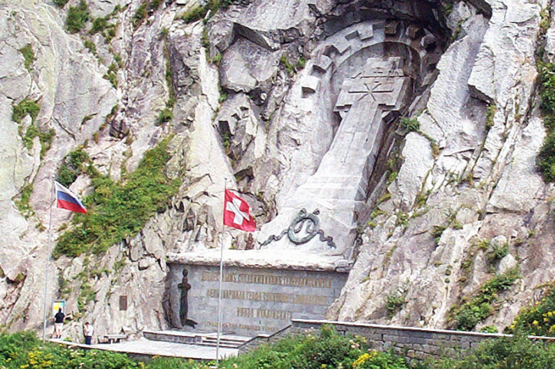 Памятник «Доблестным сподвижникам генералиссимуса А. В. Суворова, погибшим при переходе через Альпы в сентябре 1799 года» находится у Чертова моста в ущелье Шолленен в кантоне Ури. Двенадцатиметровый крест напоминает о героизме русской армии, проявившей тактическое мастерство и в суровых погодных условиях на горной дороге и без какого-либо альпинистского снаряжения победившей войска Наполеона. Сооружен в 1898 году на средства князя Сергея Голицына по проекту петербургского архитектора Александра Векшинского. Участок земли площадью около 500 кв. м, на котором установлен монумент, принадлежит России.